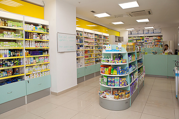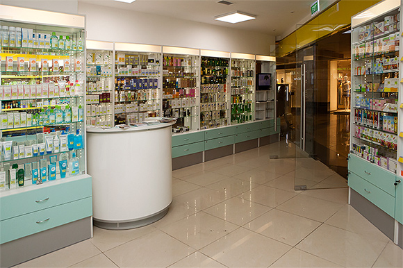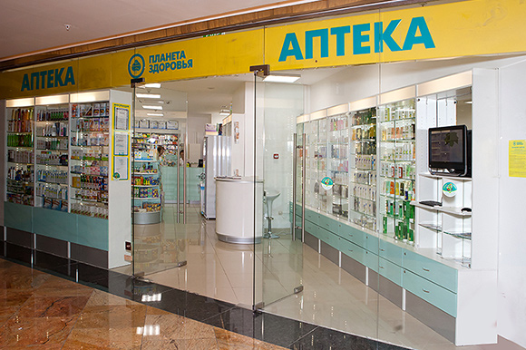Интерьер аптеки «Планета Здоровья» в «Москва-Сити»